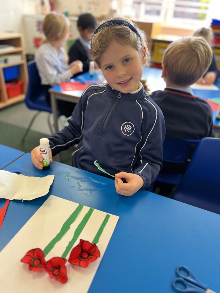 Year 2 have been learning about Remembrance Day this week and the history behind why poppies are a symbol of remembrance. In art, they created their own poppy field by folding red paper and carefully tearing green shiny paper to make a 3D poppy picture.