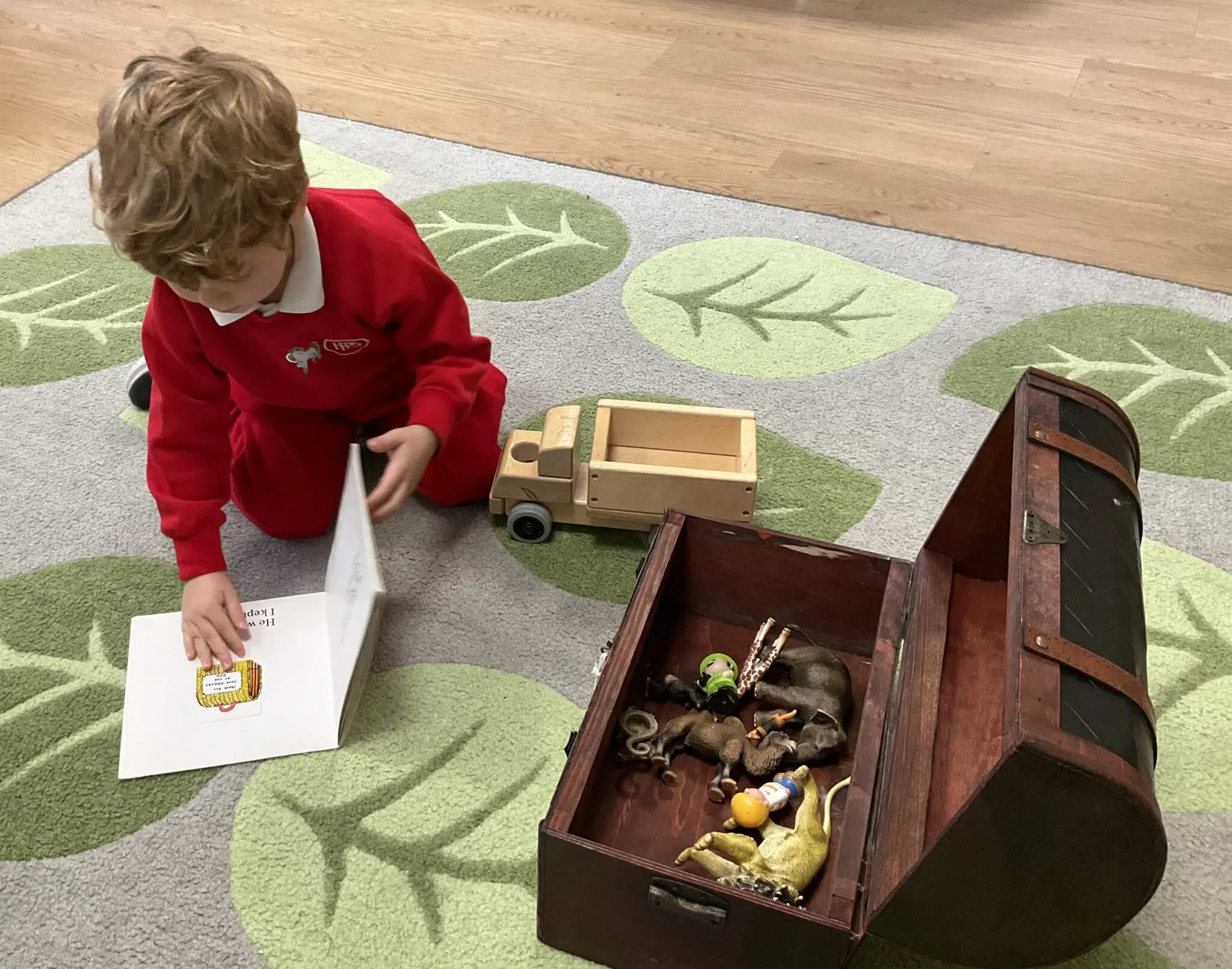 The children explored the new story in the story chest, Dear Zoo. It provided the children with the opportunity to re-tell the known story, drawing on the storybook language and repetitive refrain with the aid of props. The children did a fantastic job developing those early literacy skills.