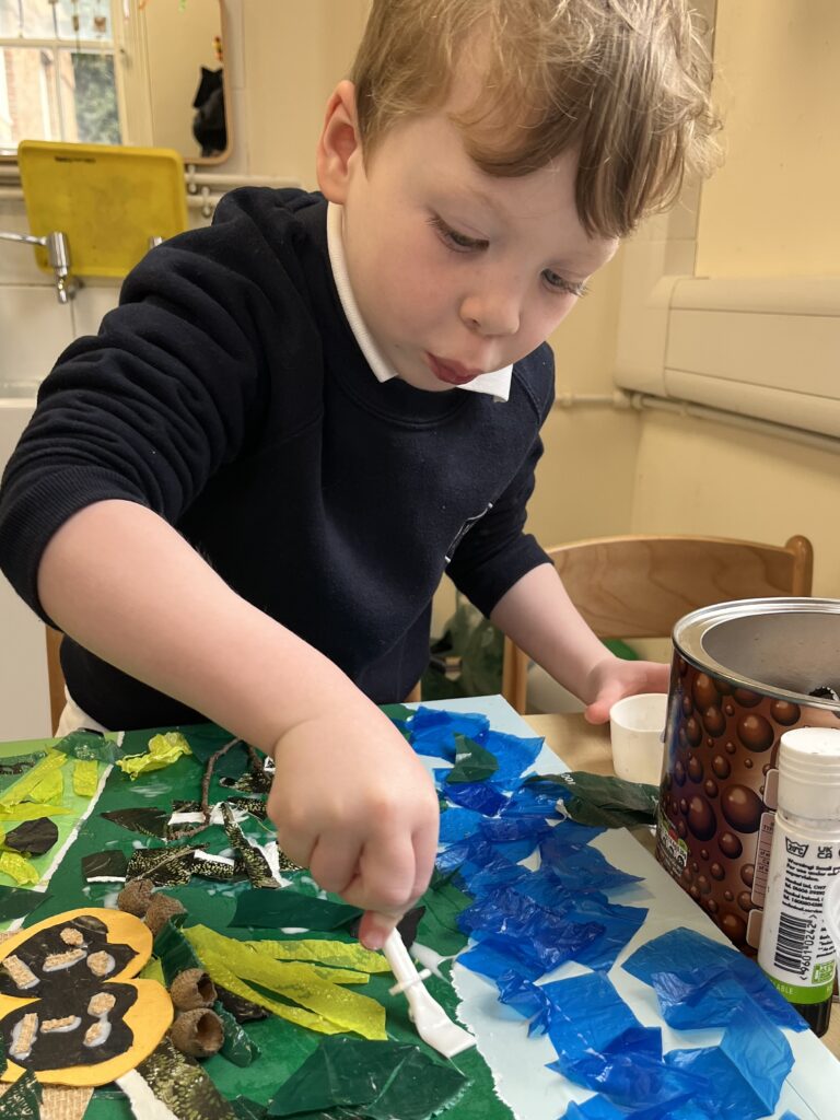 In the Lower School, the children took part in a workshop about how they can look after the planet and learned all about the the importance of safeguarding rainforest habitats for the future. They collected recycled materials from home and school to create beautiful artworks which will be hung in the corridors.